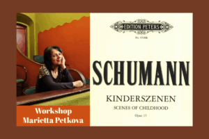 Day ticket +active participation in the workshop about Schumann’s Kinderszenen op. 15. A workshop under the guidance of Marietta Petkova. €70